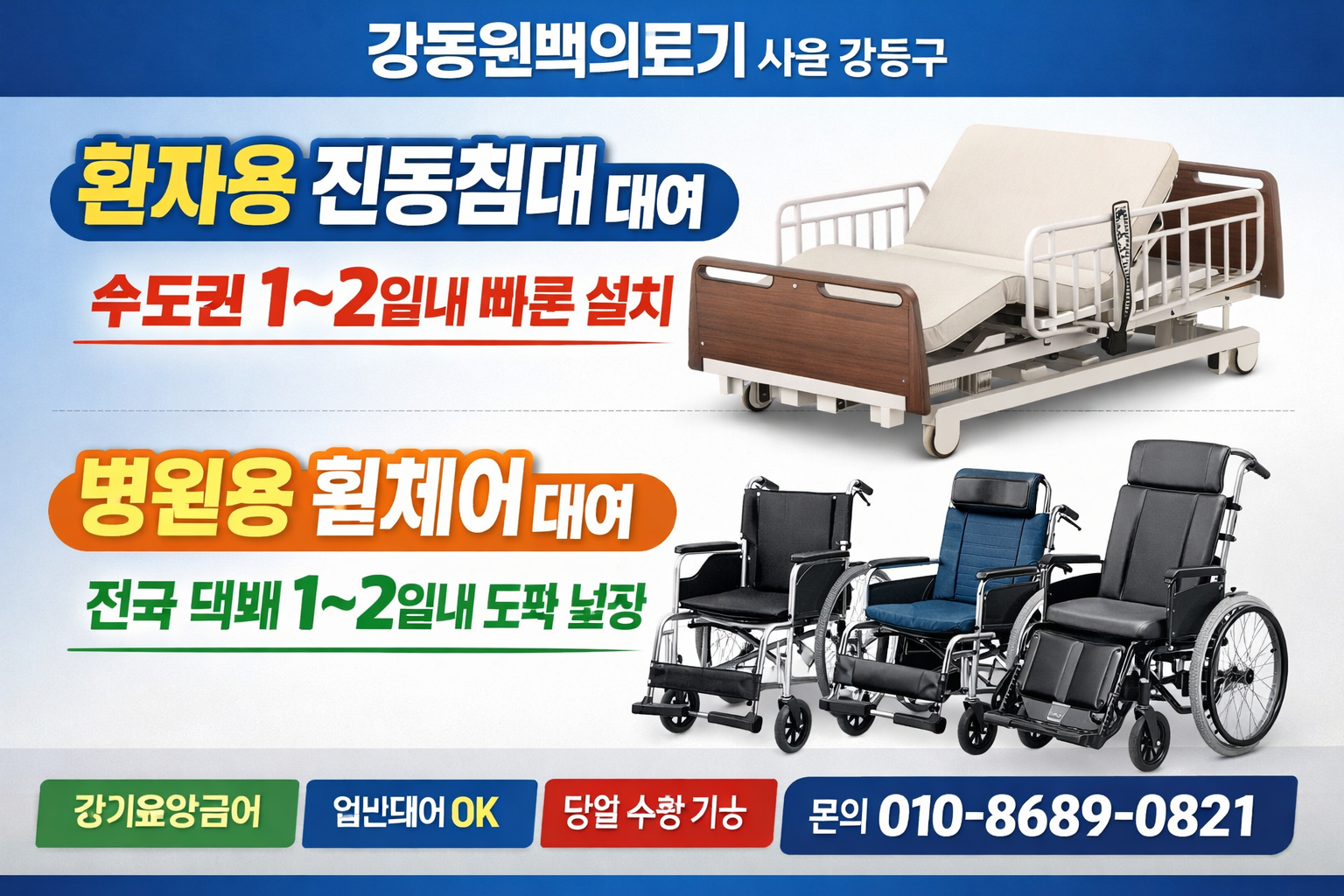 많이 문의 주시는 환자용 전동침대 대여와 병원용 휠체어 대여에 대해