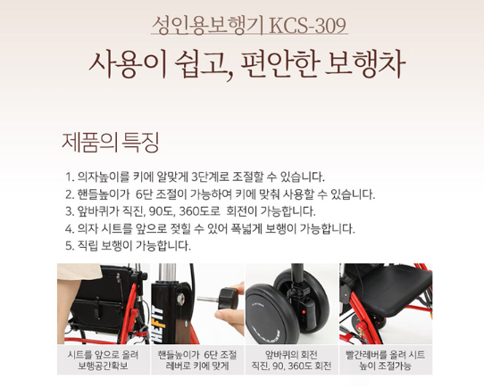 [성인용보행기 판매]KCS-309 (레드-품절/그린 가능) : 케어쉴드 - 전국 실버용품,의료기기, 노인복지