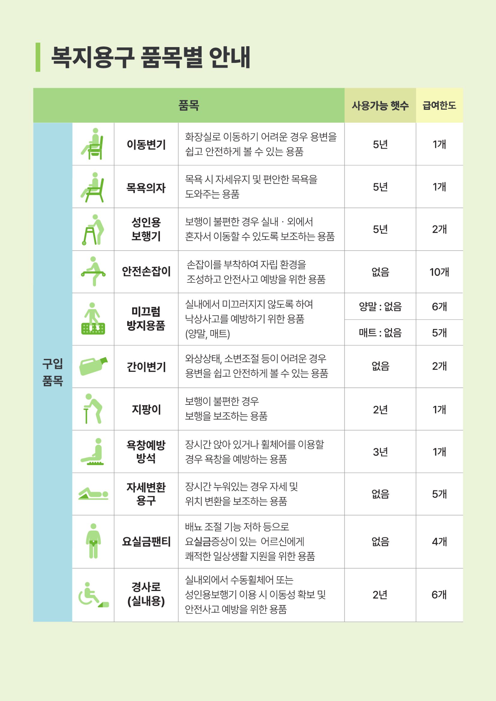 노인복지용구를 국민건강보험공단 지원으로 대여 또는 구매시 지원을 받고 이용이 가능합니다.