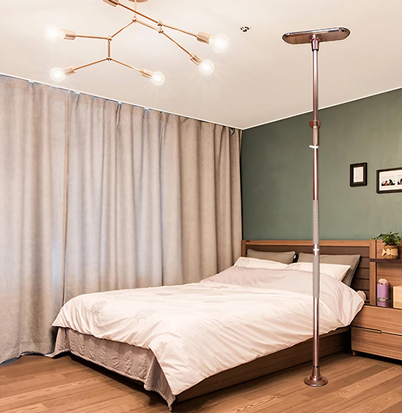 천장과 바닥에 수직으로 설치하는 제품이며, 타공없이 제품 길이를 조절해 설치 가능합니다.