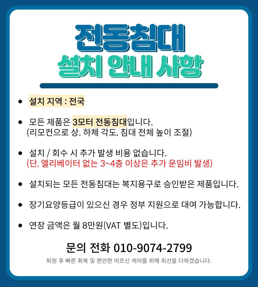 많이 문의하시는 내용 위주로 전동침대 대여하는 방법에 대해 소개할게요.