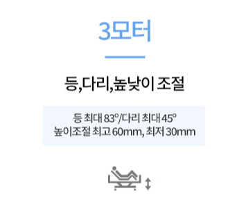 3모터 전동침대는 상. 하체 각도와 전체 높낮이를 리모컨으로 조절 가능합니다.