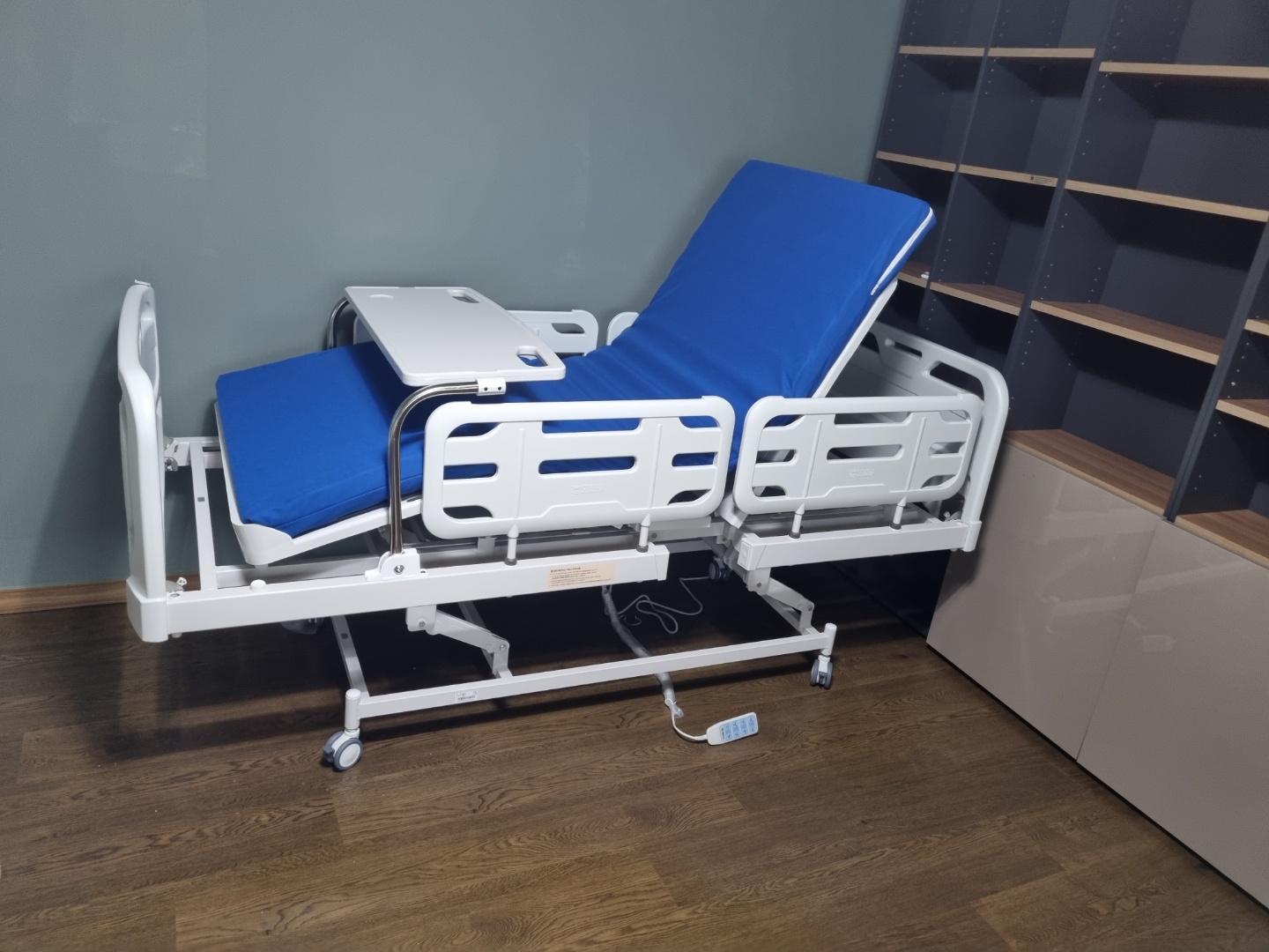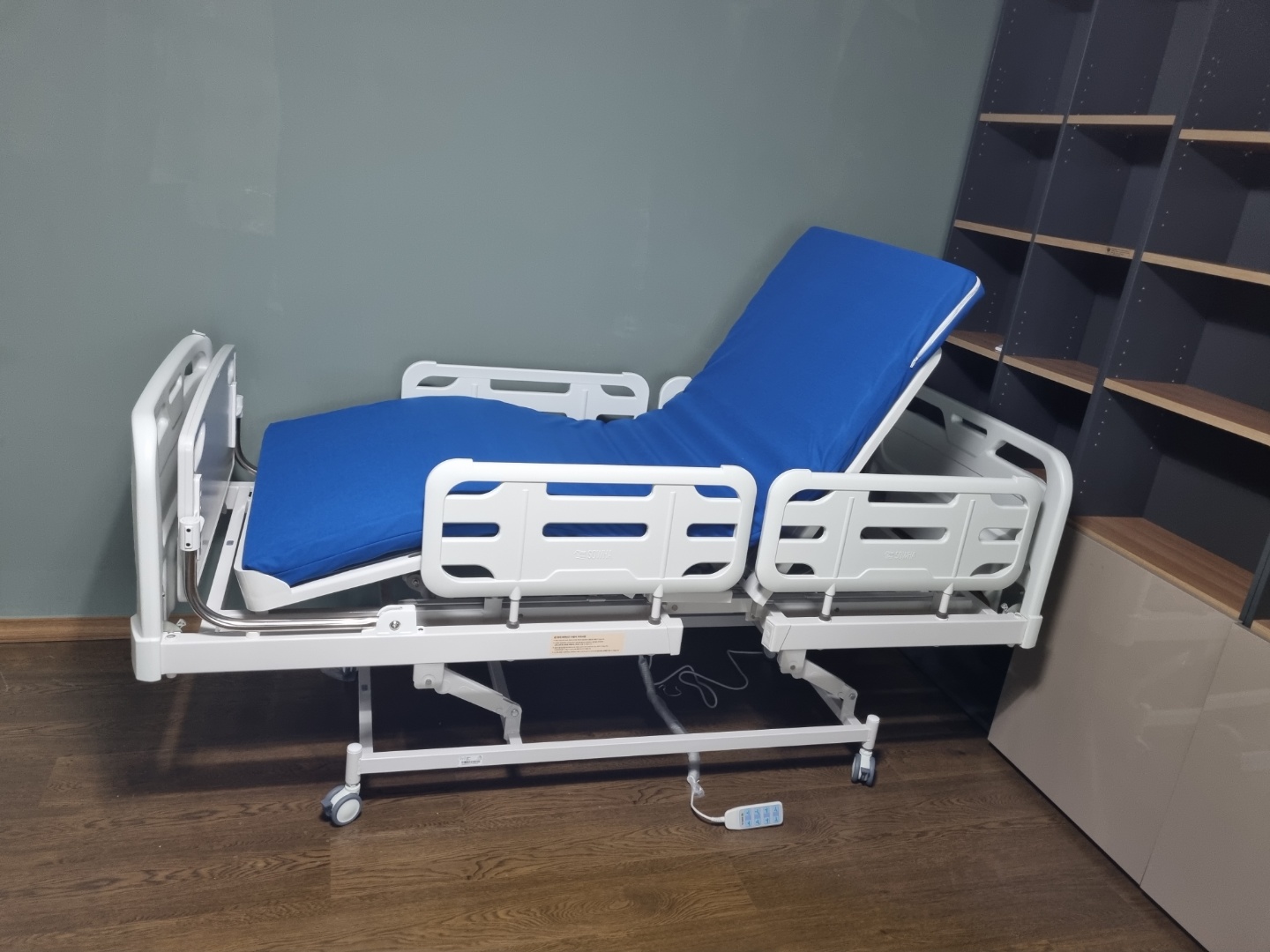 저가형 2모터 제품과는 다르게 3모터 방식의 제품은 병원침대의 높낮이 까지 조절이 가능한 침대입니다.